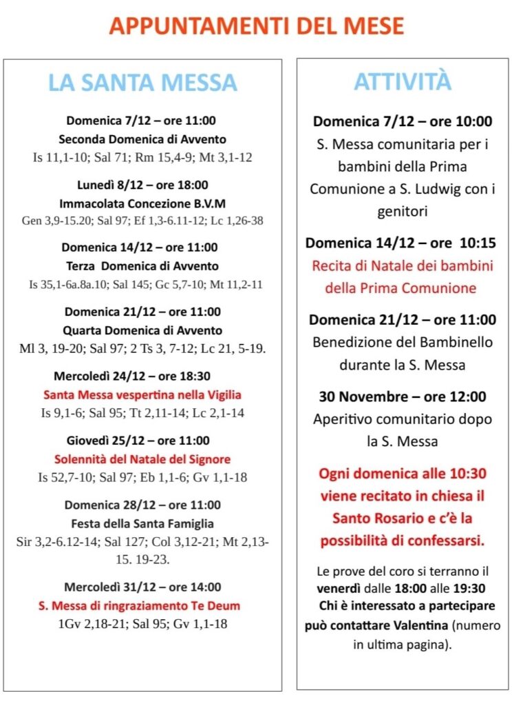 Ti aspettiamo alla nostra Messa ogni Domenica alle 11:00 presso la chiesa di St. Fidelis, Feldbergstraße 27, 64293 Darmstadt